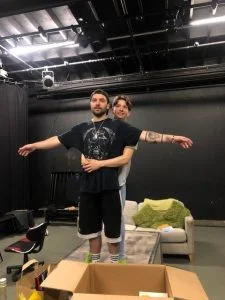 The plays tackles a few difficult subject matters and this has often been challenging in the rehearsal room, but Violet seems to have a few tricks up her sleeve to put her cast at rest, help them bond and to break down the social barriers – one of these is getting the cast to brush each others teeth, yes that’s right, she got them to brush each others teeth – see the pictures if you don’t believe me! Violet tells me this has been a great way for the cast to get to know each other and break down the boundaries as there are a few intimate scenes and some of the cast didn’t know each other.